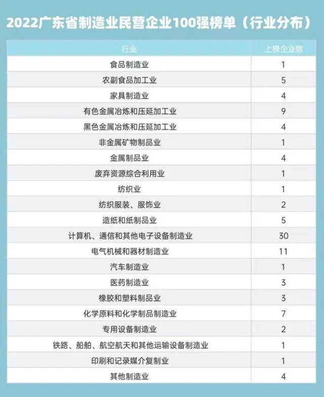 2022广东省制造业民营企业100强