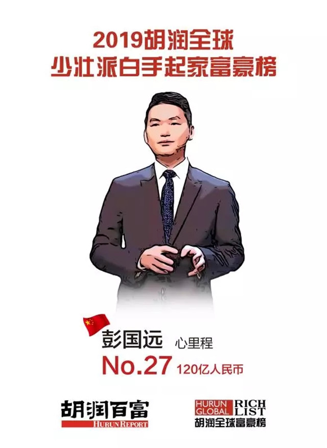 《2019胡润全球少壮派白手起家富豪榜》第27位